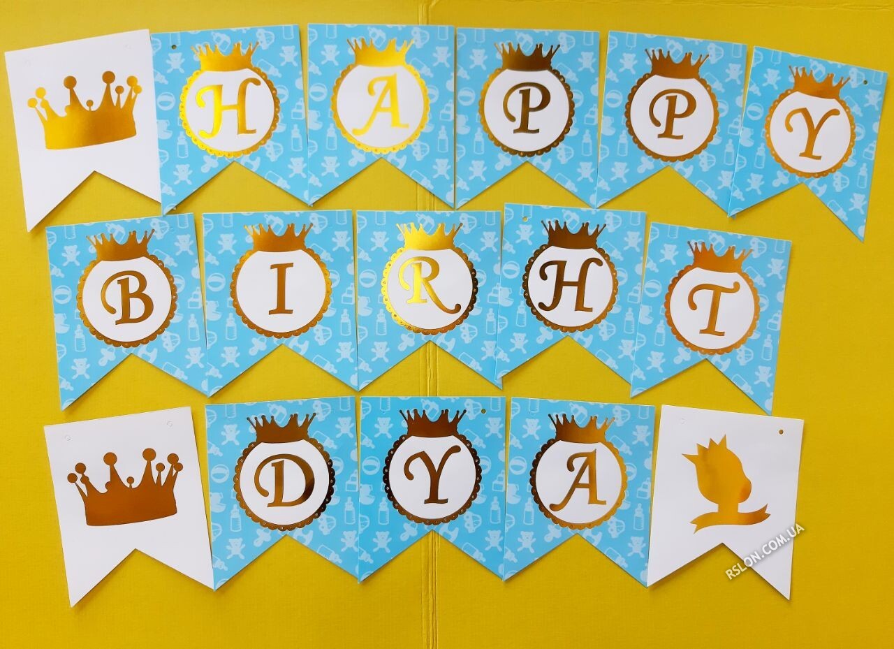 Баннер гирлянда "Happy Birthday Принц". Цвет: Голубой. Длина: 5м.