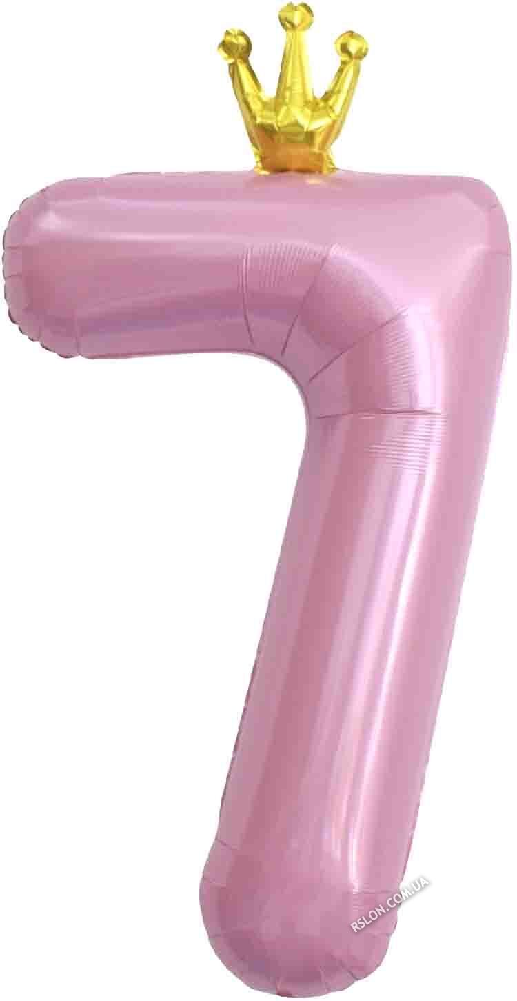 Фольгированная цифра с Короной "7". Цвет: Розовый. Размер: 42"(105см.)