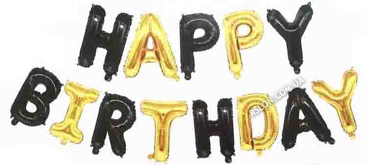 Фольгированные шары буквы "Happy Birthday". Цвет: Золото/Чёрный. Размер:16"(40см.)