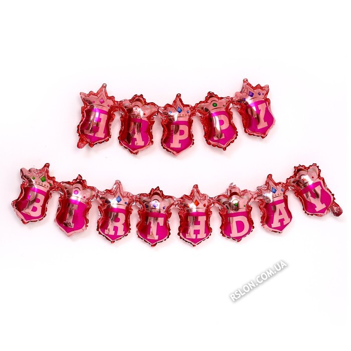 Фольгована гірлянда "Happy Birthday". Колір: Рожевий. Довжина: 2м.