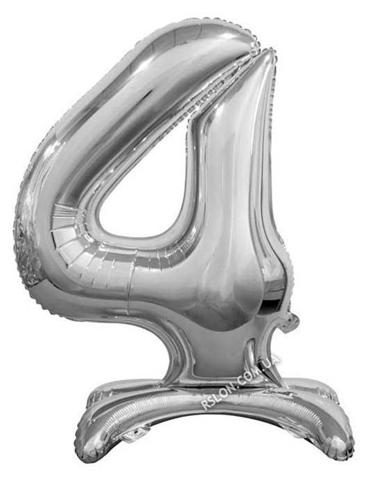 Фольгована куля цифра "4" на підставці в упаковці. Колір:Срібло . Розмір: 80см.