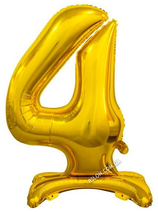 Фольгована куля цифра "4" на підставці в упаковці. Колір: Золото. Розмір: 80см.