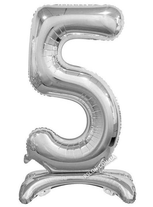 Фольгована куля цифра "5" на підставці в упаковці. Колір: Срібло . Розмір: 80см.