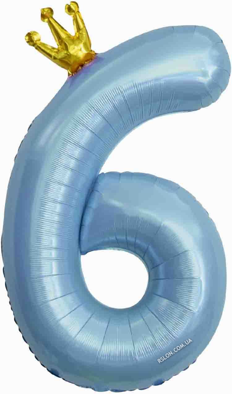 Фольгированная цифра с Короной "6". Цвет: Голубой. Размер: 42"(105см.)