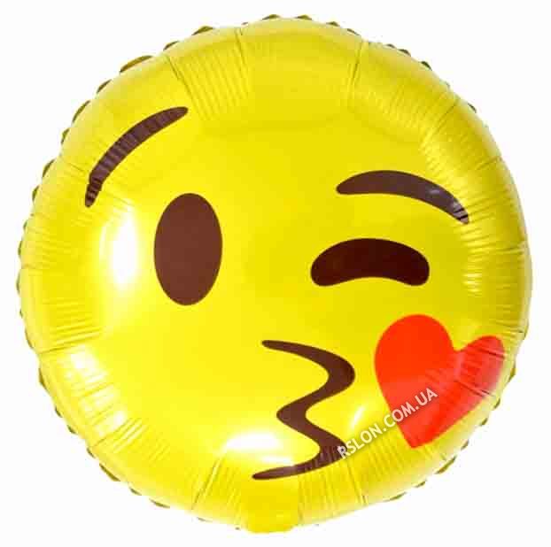 Фольговані кулі коло "Смайл з сердечком". Діаметр: 18"(45 см)
