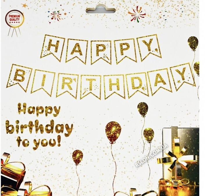 Гирлянда флажки "Happy Birthday Голограмма". Цвет: Золото. Длина: 3м.