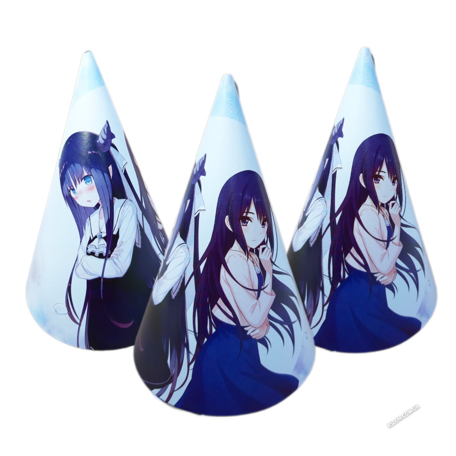 Колпачки праздничные "Аниме девочки". Размер: 16см. В упак:10шт