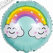 Куля фольгована кругла "Веселка з хмарами". Розмір: 18"(45см).