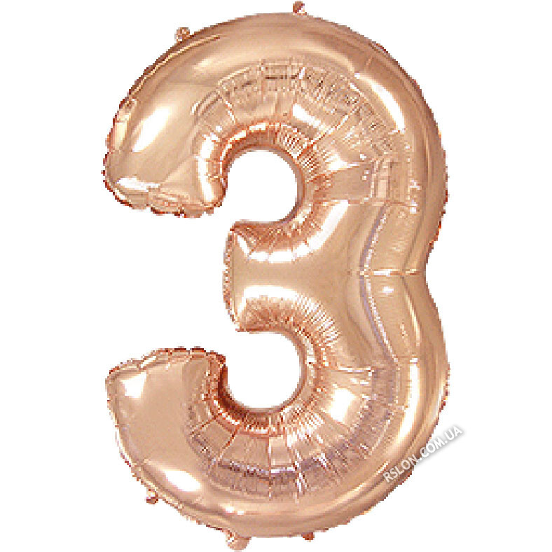 Куля цифра "3" колір: Рожеве золото. Розмір: 40" (100см). Пр-під: FlexMetal (Іспанія)