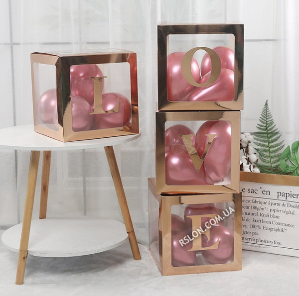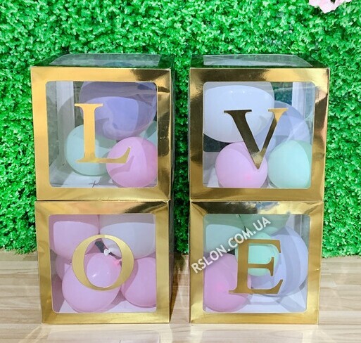 Набор коробок для воздушных шаров "LOVE". Цвет: Золото. Размер:30см*30см.