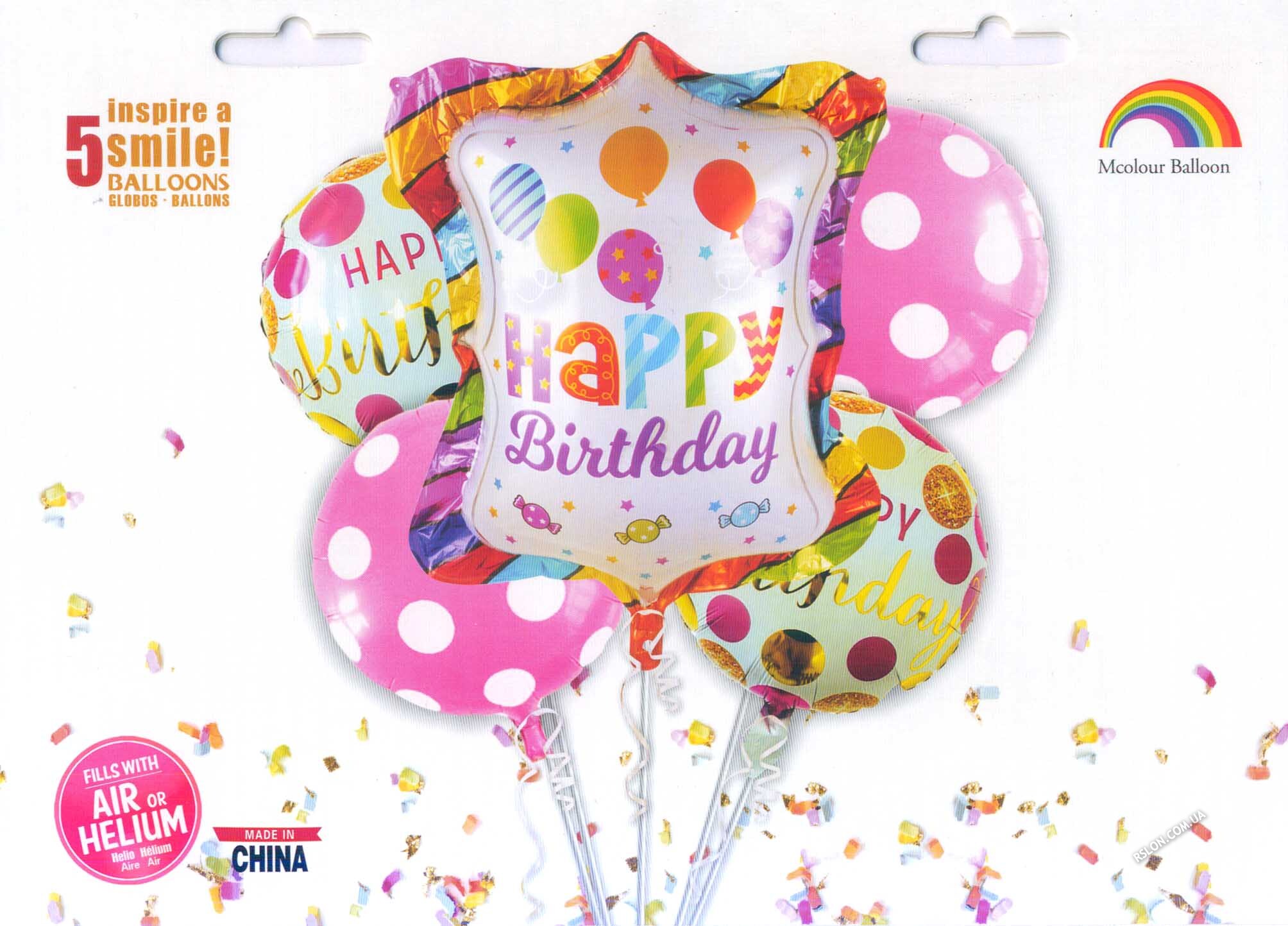 Набір тематичних куль "Happy Birthday". В упак:5шт.