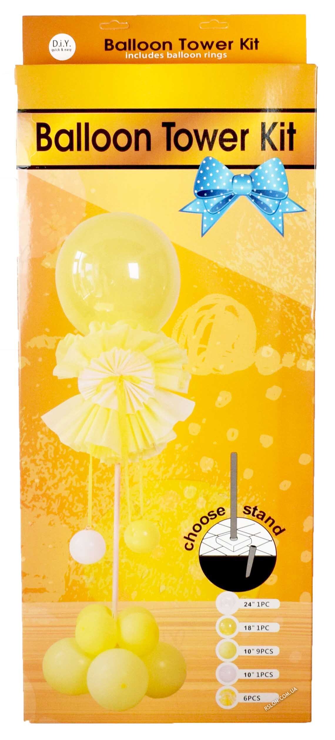 Набор прост в монтаже, сборная стойка состоит из основания с камушками для устойчивости конструкции, и четырёх трубок которые нужно соединить между собой специальными перемычками, которые идут в комплекте. Сверху крепиться насадка для крепления самого большого шара. Существует два вида комплекта, в зависимости от цвета. В одной комплектации идёт один большой латексный шар, в другой идёт два, прозрачный баблс и латексный шар. Надувается по принципу "Дабл Стафф (Double Stuff), шар в шаре. Сформировать бумагу в виде банта и подвязать лентой к стойке. Высота в сборе около 2 метров.