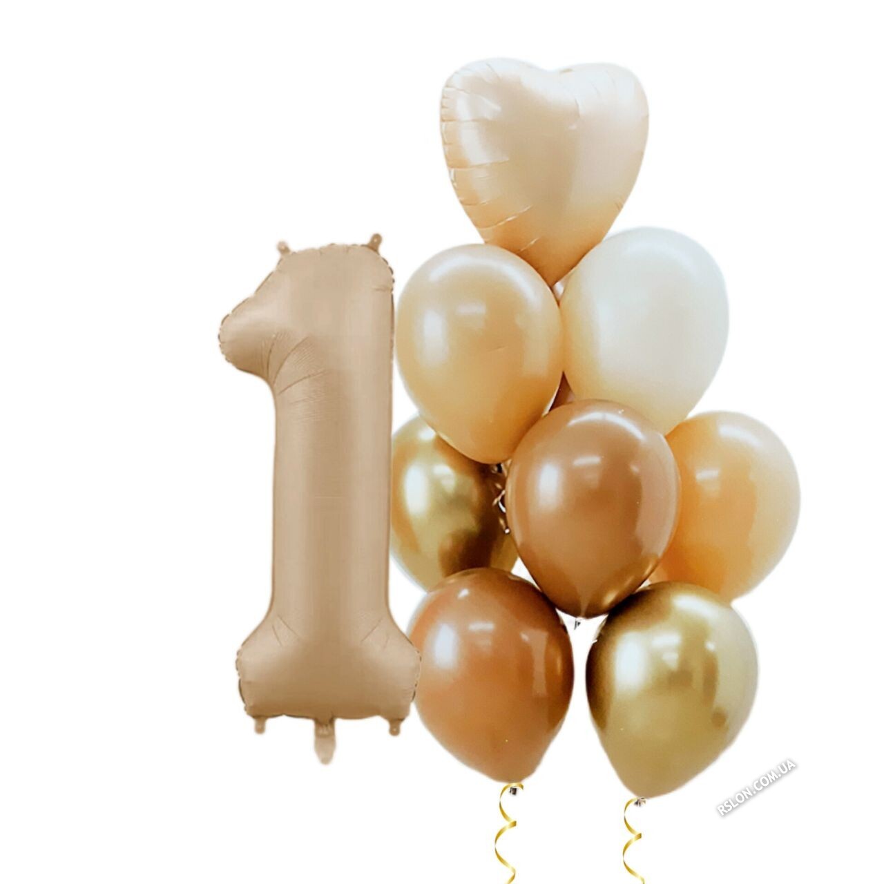 Набор "Цифра 1 с воздушными шарами" Цвет: Бежевый. Размер: 32"(80см.) Пр-во: Китай.