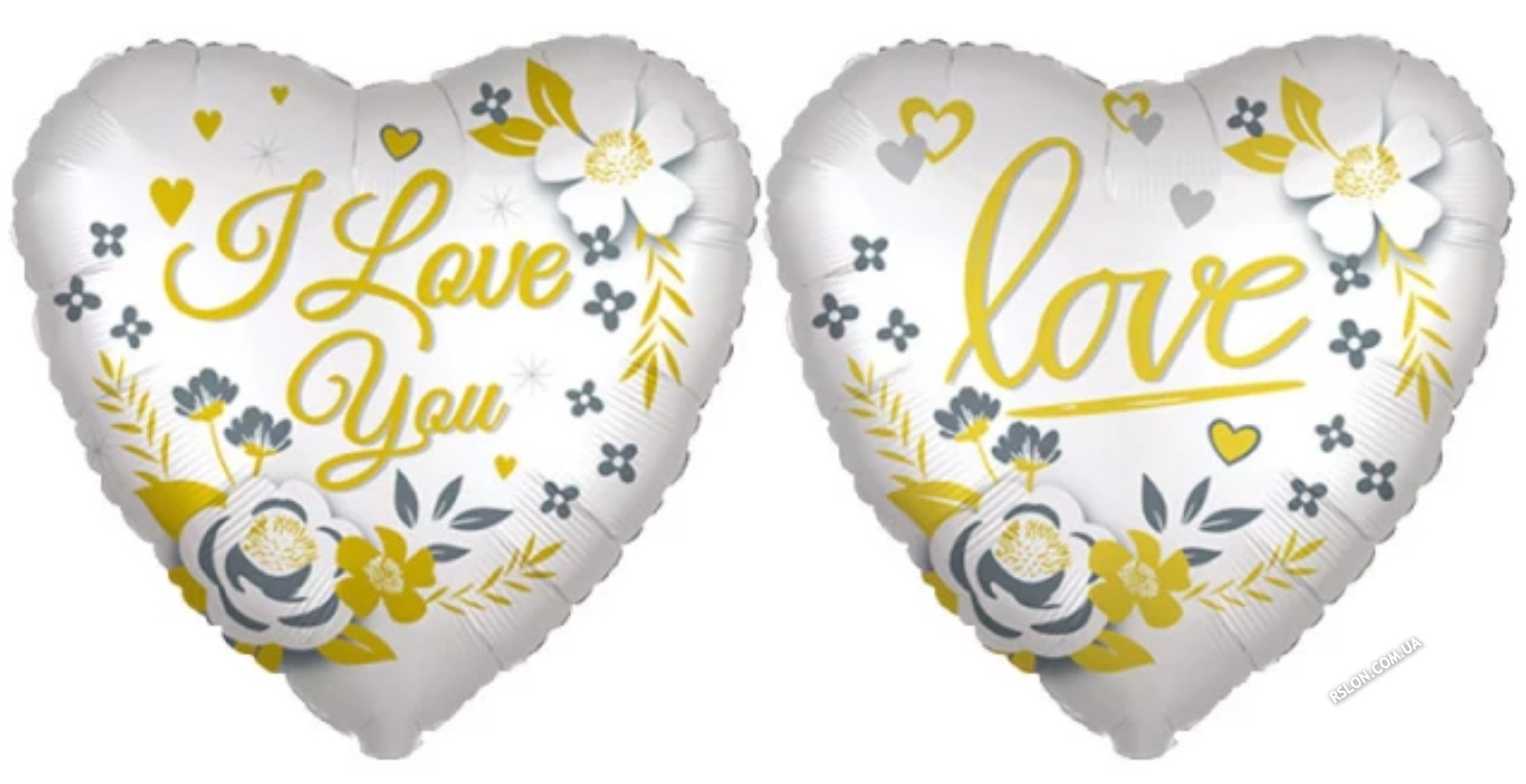 Шар фольгированный сердце "I Love You" Белый. Размер: 18"(45см.)