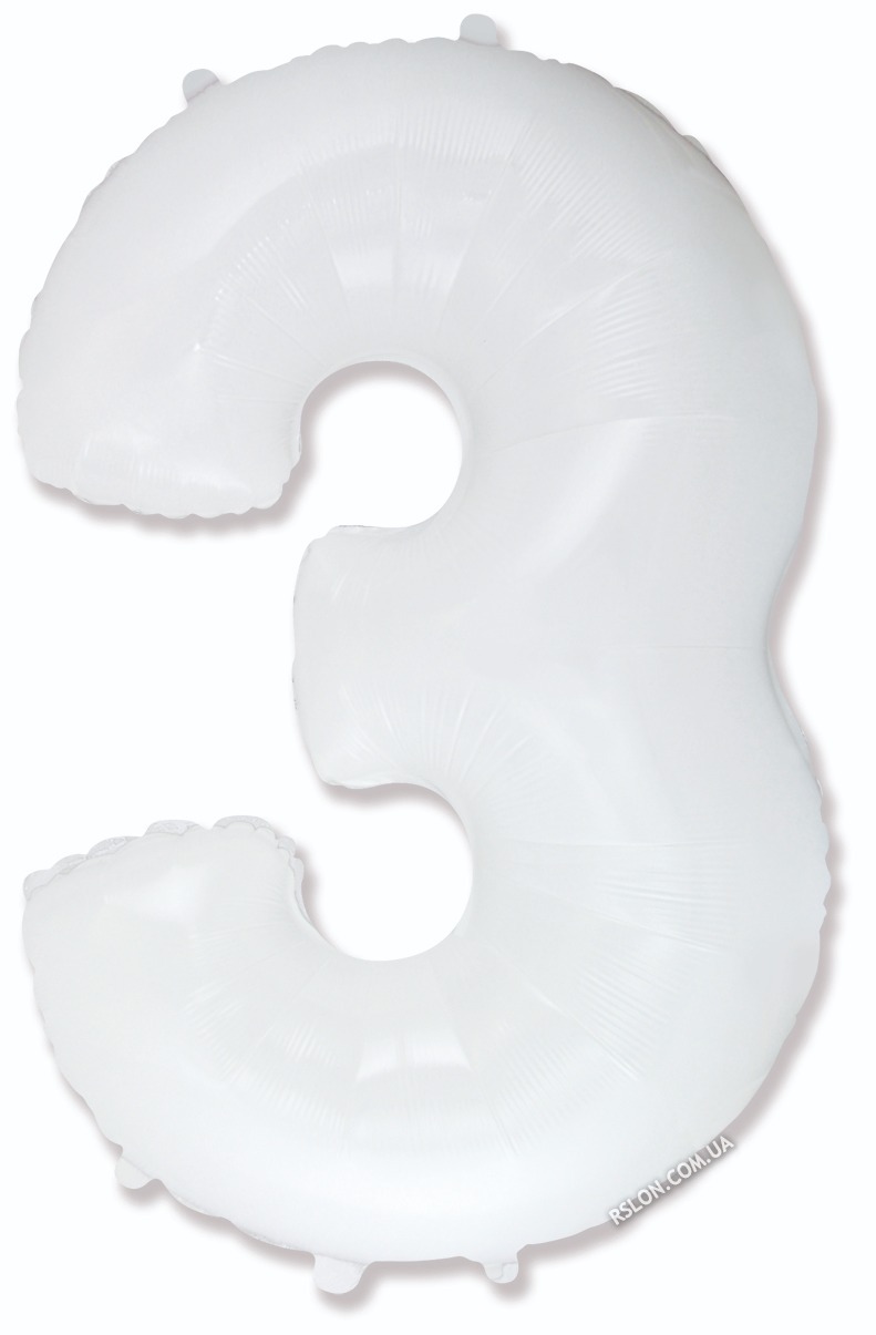 Шар цифра "3" Цвет: Белый. Размер: 40"(100см). Пр-во: FlexMetal (Испания)