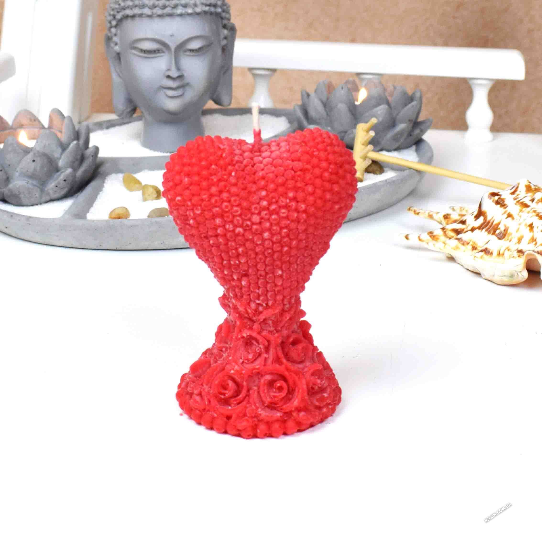 Свеча "Сердце с розами".Цвет:Красный Высота:11см. Материал:Парафин.
