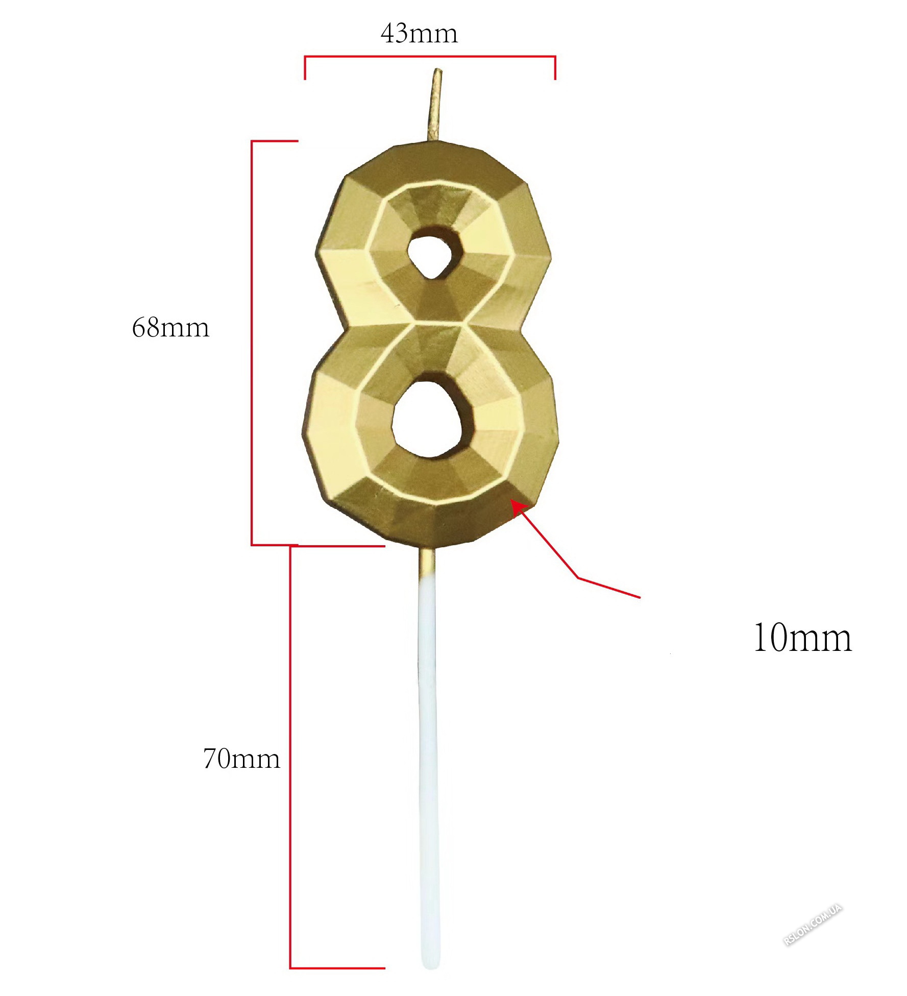Свеча цифра "Хром Золото 8". Размер: 7см…
