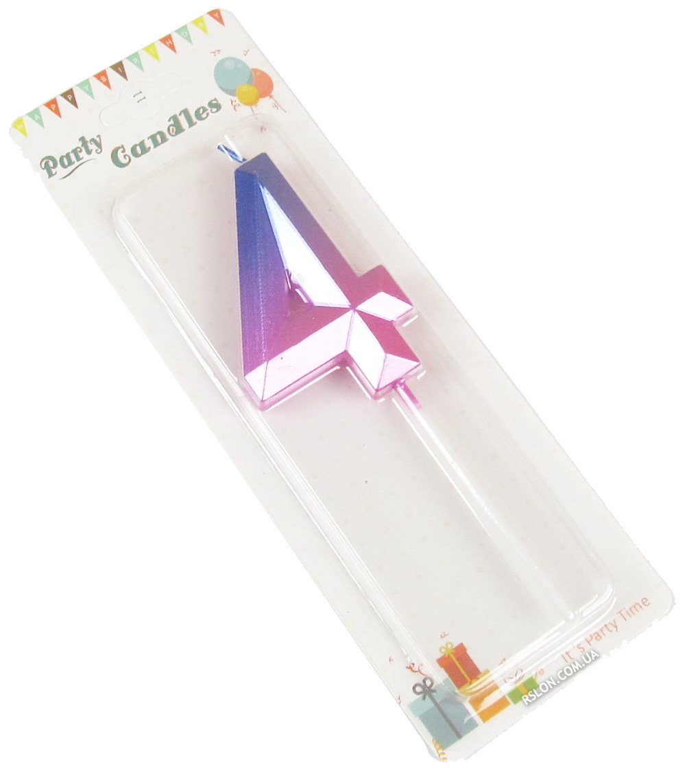 Свеча цифра для торта "Омбре Инстаграм 4". Цвет: Омбре. Высота: 69см. Пр-во: Китай
