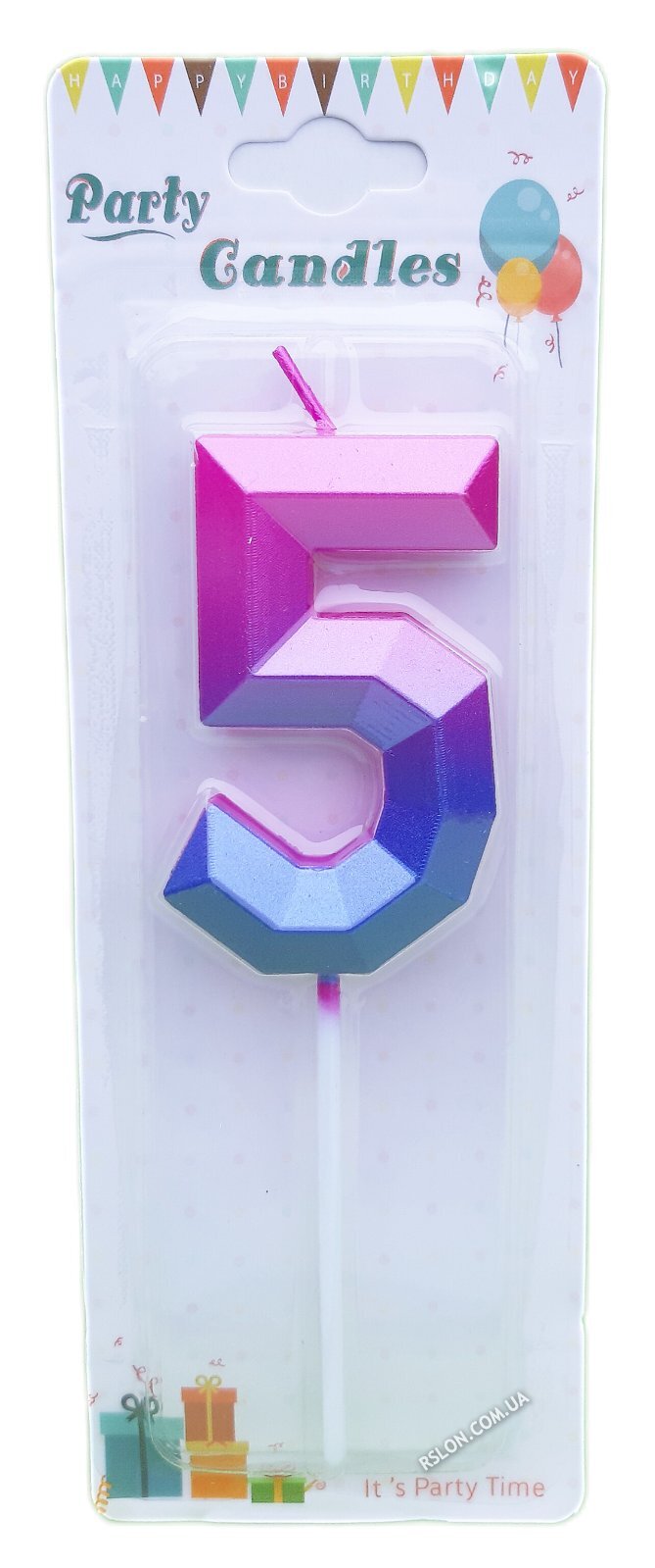 Свеча цифра для торта "Омбре Инстаграм 5". Цвет: Омбре. Высота: 69см. Пр-во: Китай