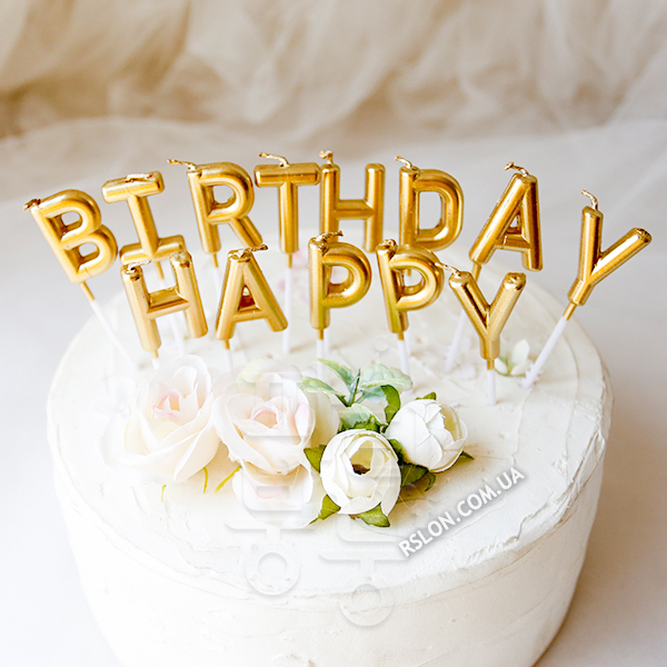 Свечи буквы для торта "Happy Birthday" Цвет: Серебро Хром.