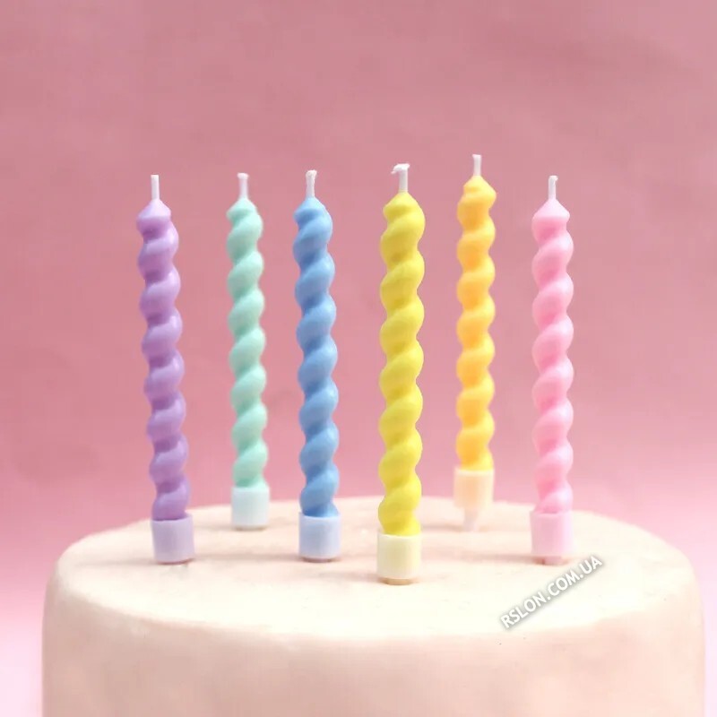 Свічки для торта "Спіральки Макарун Кольорові. Розмір: 8 см. упак: 6шт.