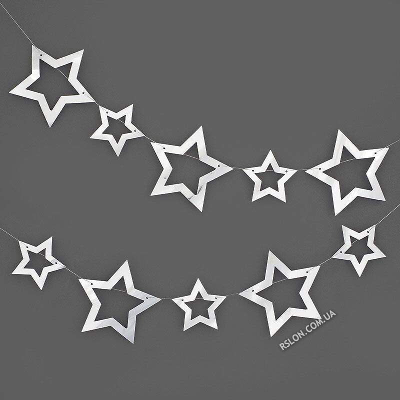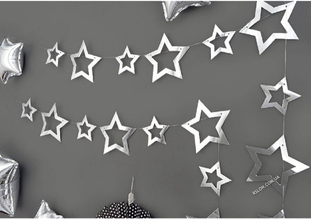 Украшение Звёздочки. Цвет: Серебро. В упак: 12шт. Длина: 5м.