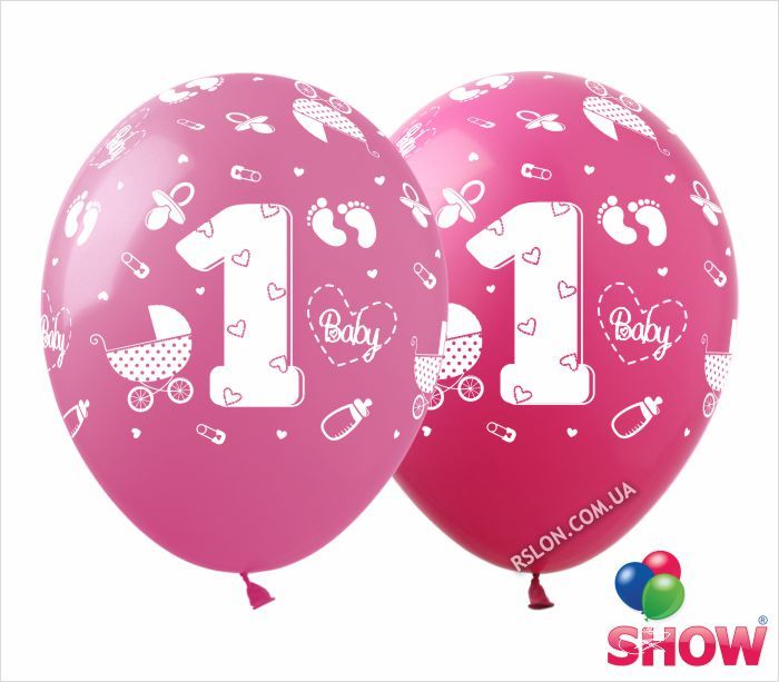 Воздушные шары "1 годик девочка" 12"(30 см) пастель В упак: 100шт ТМ Арт «SHOW»