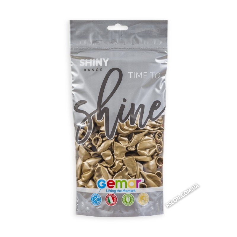 Воздушные шары "Хром" 13"(33см). Цвет: Золото (Shiny Gold) В упак:50шт. ТМ "Gemar" Италия